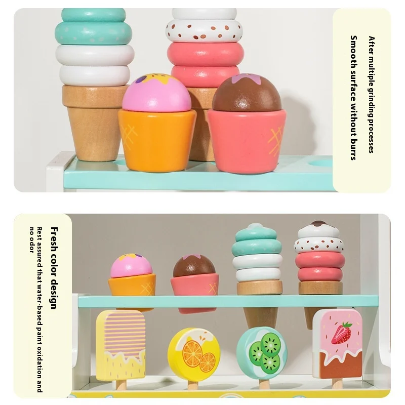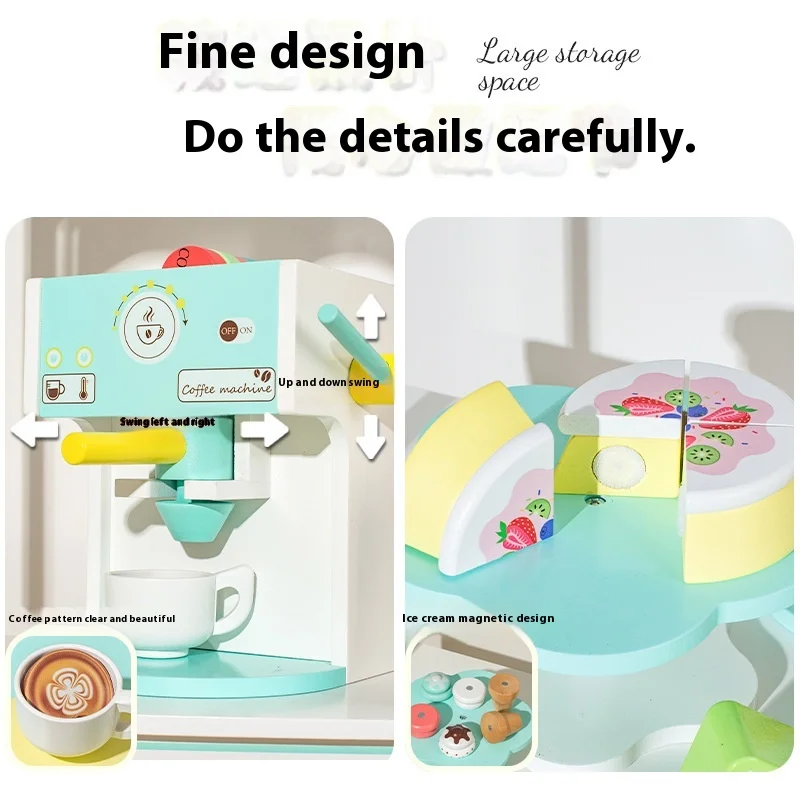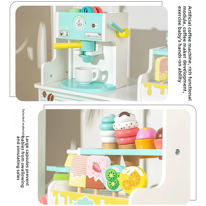Multi-functional Wooden Kitchen Dessert Stall Pretend Sweet Coffee Store Educational Learning Toys for Kids Toddler Boys & Girls